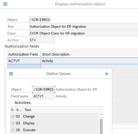 /XCM/ERMIG, to control access to the migration application. This ensures that only authorized users can access and perform migration-related activities. - Find the details of the new authorization object below, and assign it to your team as well as to our key users