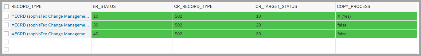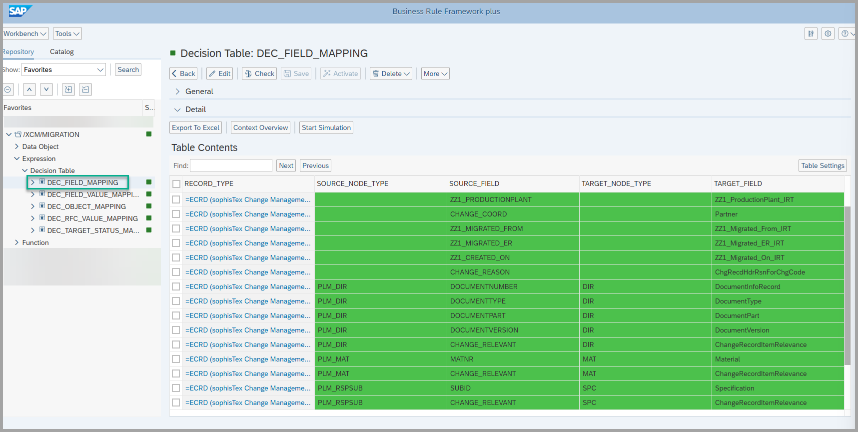 The Target Status Mapping decision table is used to map the status of an Engineering Record (ER) to the corresponding target status in the Change Record (CR) within the Migration kit application, to support the scenarios of different status net in the S/4HANA system vs Legacy system