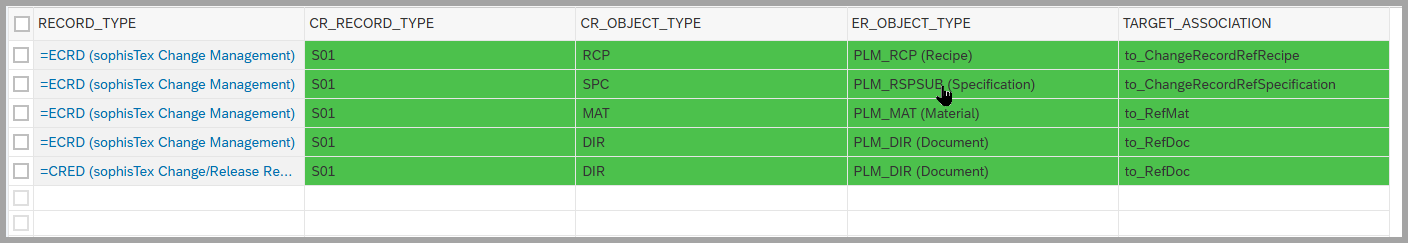 CR_RECORD_TYPEspecifies the target Change Record type in the S/4HANA system to which the object should be mapped - The