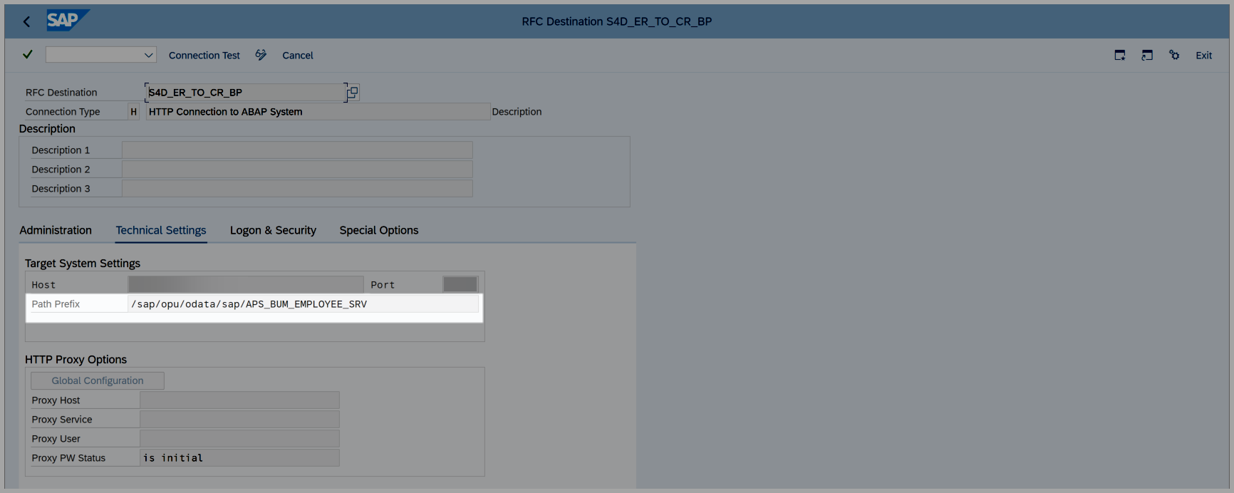 - Under the value column, You need to provide the RFC destination that was created in the legacy system
