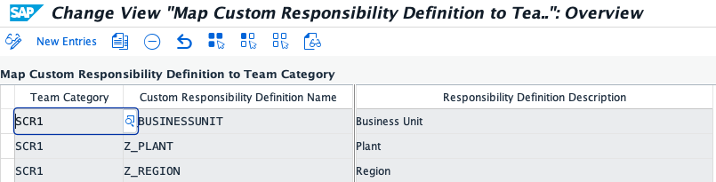 You can assign these responsibility definitions to a team category using the following IMG path: SPRO → Cross-Application Components → General Application Functions → Responsibility Management → Teams and Responsibilities → Team Categories → Assign Responsibility Definitions to Team Category