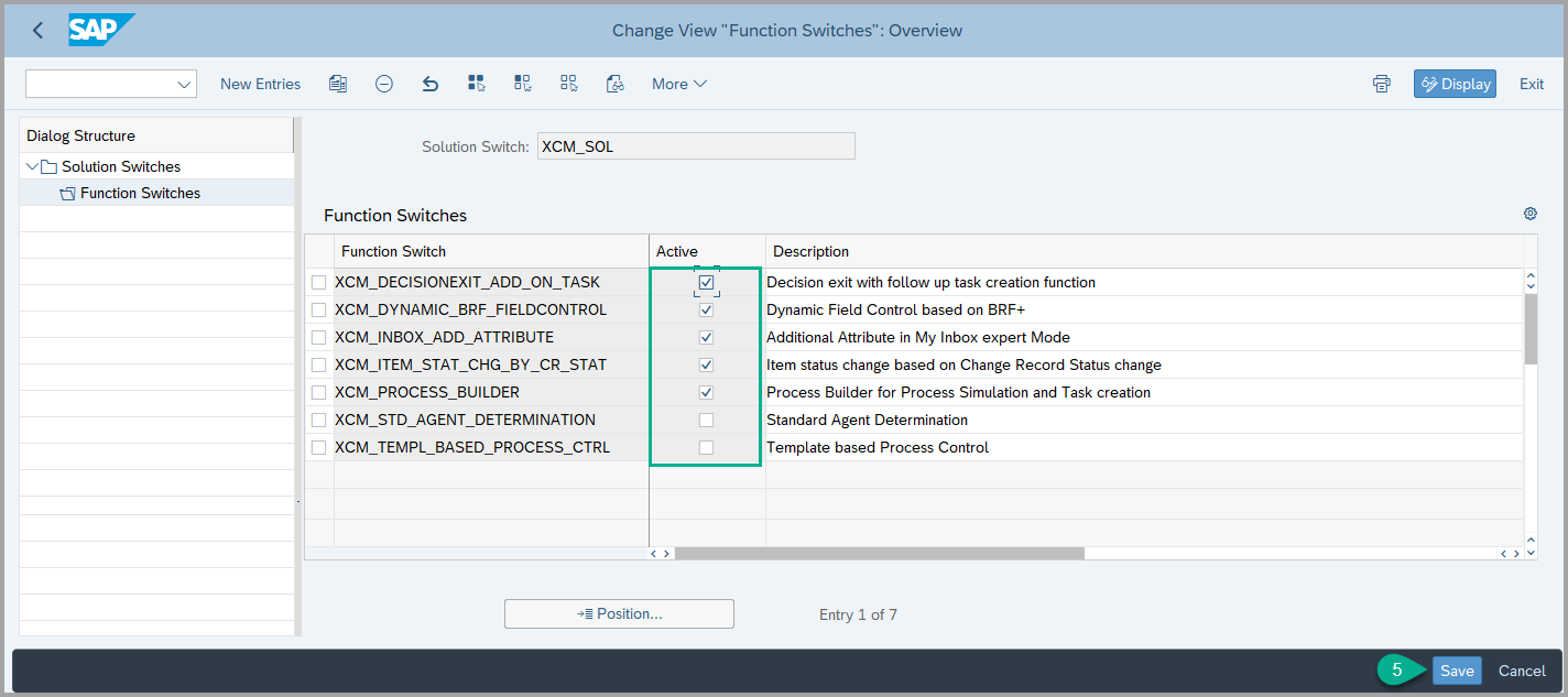 3. Select the Solution Switch entry, then click on Function Switches. If required, check the box for the specific switch you want to activate.