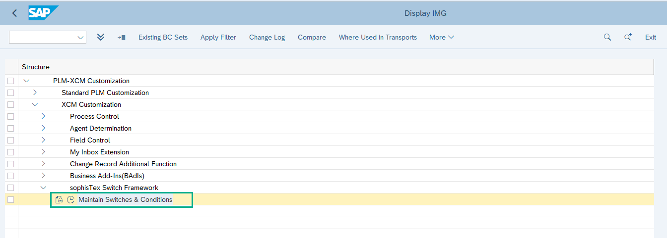 - Navigate to the path XCM Customization → sophisTex Switch Framework