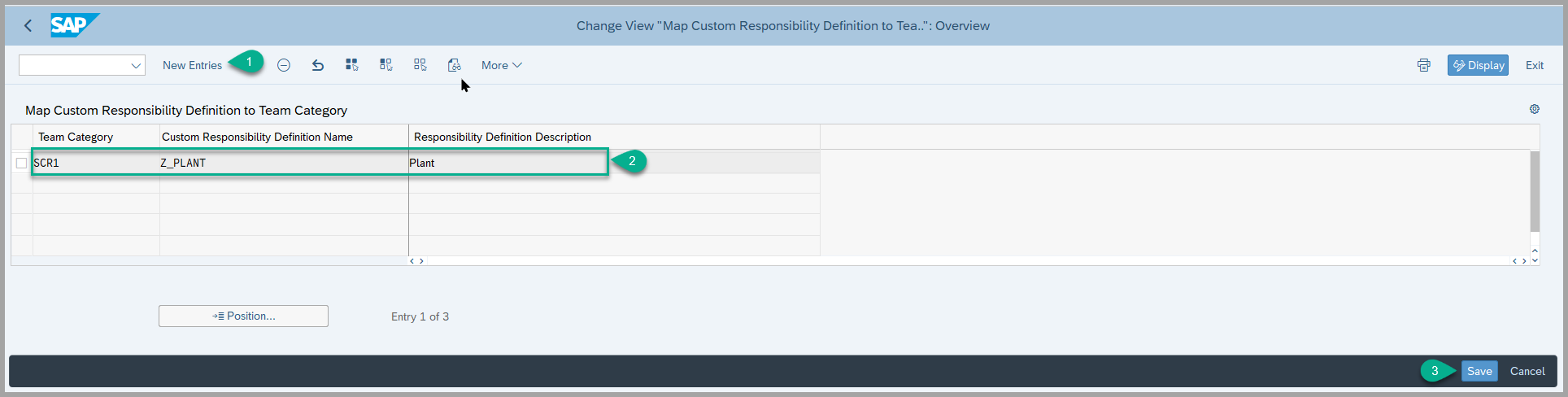 - In this Customizing activity, you can assign a custom responsibility definition to a team category. /n/xcm/cus → Standard PLM customization → Responsibility Management → Teams and Responsibilities → Team