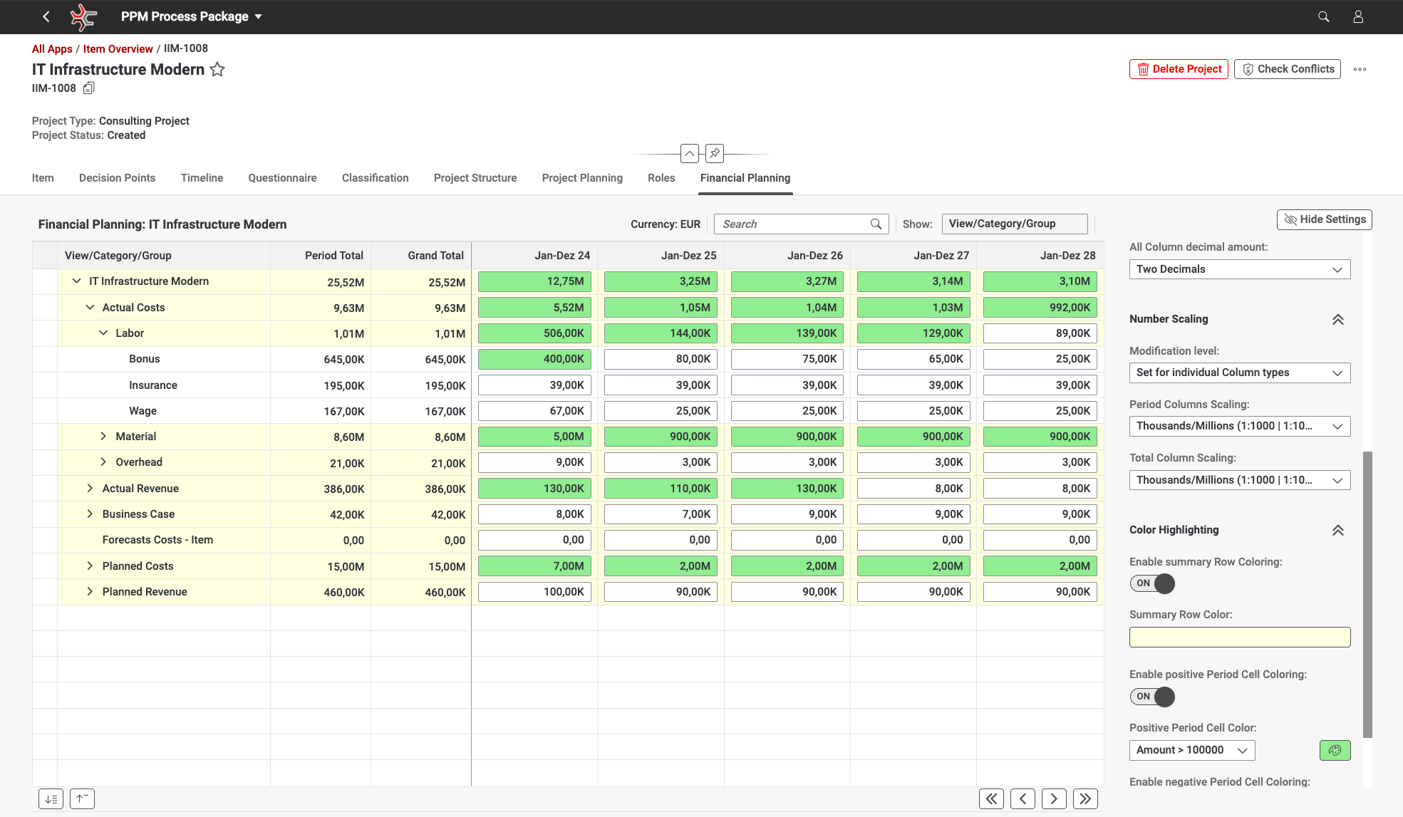 - Advanced Personalization: PPP extends beyond Classic PPM UI capabilities by offering enhanced number formatting, automatic color highlighting for critically low values, and flexible scaling options to improve visibility and usability.