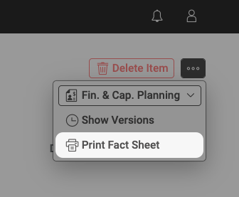 - Seamless Access: Previously, Fact Sheets could only be displayed and printed from the Item Overview. With this release, users can now access an Item’s Fact Sheet directly from the Item Details view, streamlining workflows and eliminating unnecessary navigation steps.