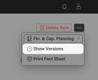 - Quick Access to Versions: A new “Show Version” option is now available within Items and Projects, making it easier to locate and navigate to related versions, including Snapshots and Simulations.
