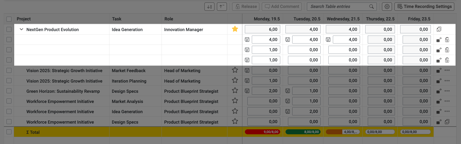 - Easily Copy Time Records: Reduce repetitive work by duplicating existing time entries, ideal for recurring tasks or similar daily efforts.