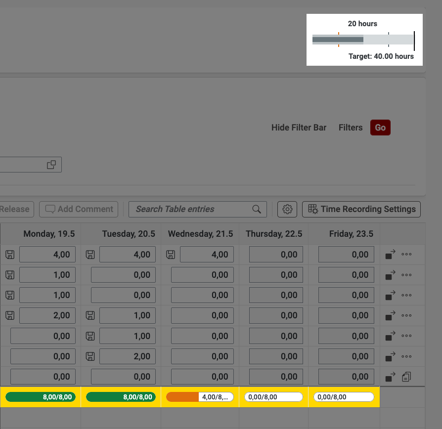 - Target Hours Visualization: Instantly see your progress toward daily and weekly targets through easy-to-understand visual cues.