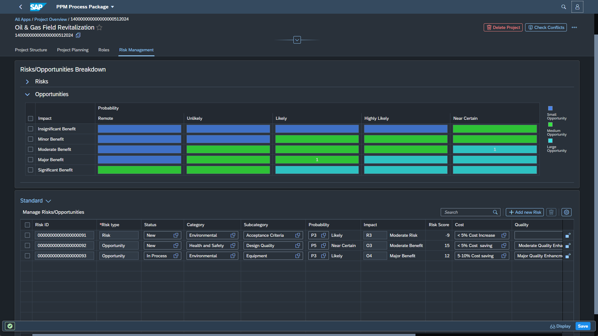Manage risks and opportunities directly and flexibly with our new Integrated Risk Managementmodule. Fully independent and customizable, this tool adapts to your business needs, letting you rate, evaluate, and visualize risks and opportunities on project or item level with tailored graphics, colors, and metrics aligned to your corporate design.