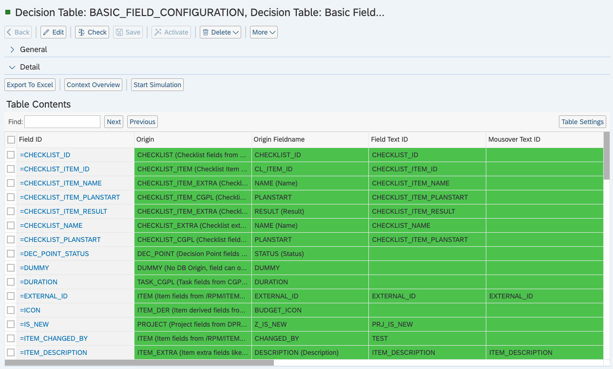 Open your BRF+ Application and navigate to the expression table “Basic Field Config” (Technical Name: BASIC_FIELD_CONFIGURATION).