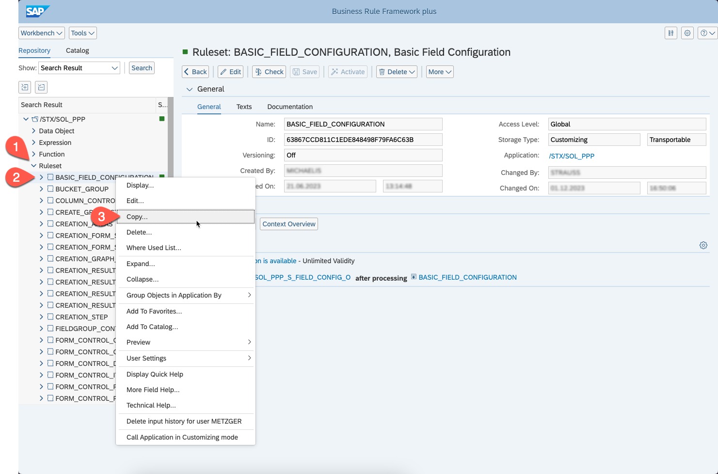 All further steps for the copy of Rulesets is the same as the Expression Table Copy Steps.