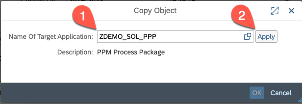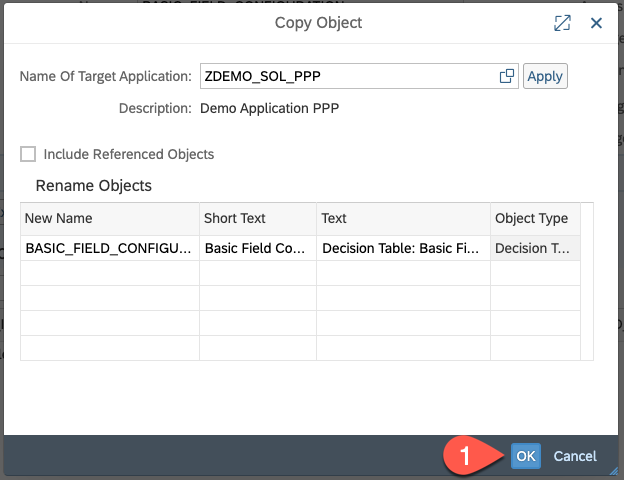 You are now prompted with all Expression Tables in your new second Application by default. If not, simply search for the Expression Table via Name and Application Name. Select the desired Expression Table and hit Ok: