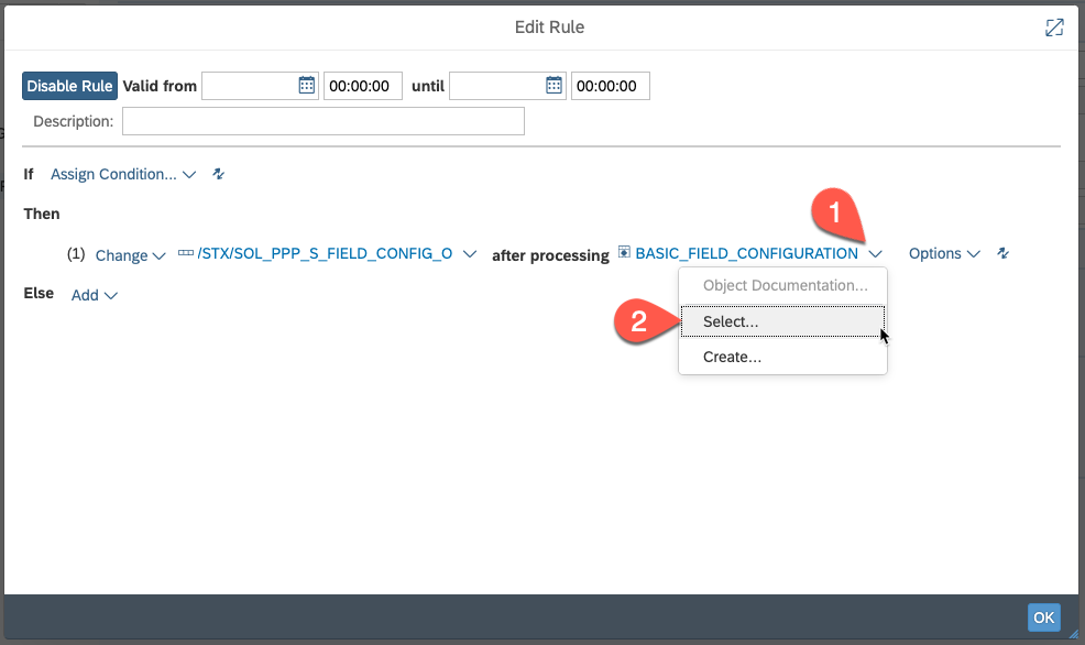 The Popup closes and you can click Ok on the currently open Popup too. If you want to verify, that the rule now causes the correct Expression Table, simply click on its name in the rule and you will be redirected to the Expression Table.
