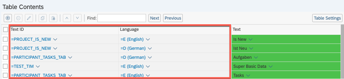 In the image, the Condition Columns are highlighted with a red box. These columns include “Text ID” and “Language.”