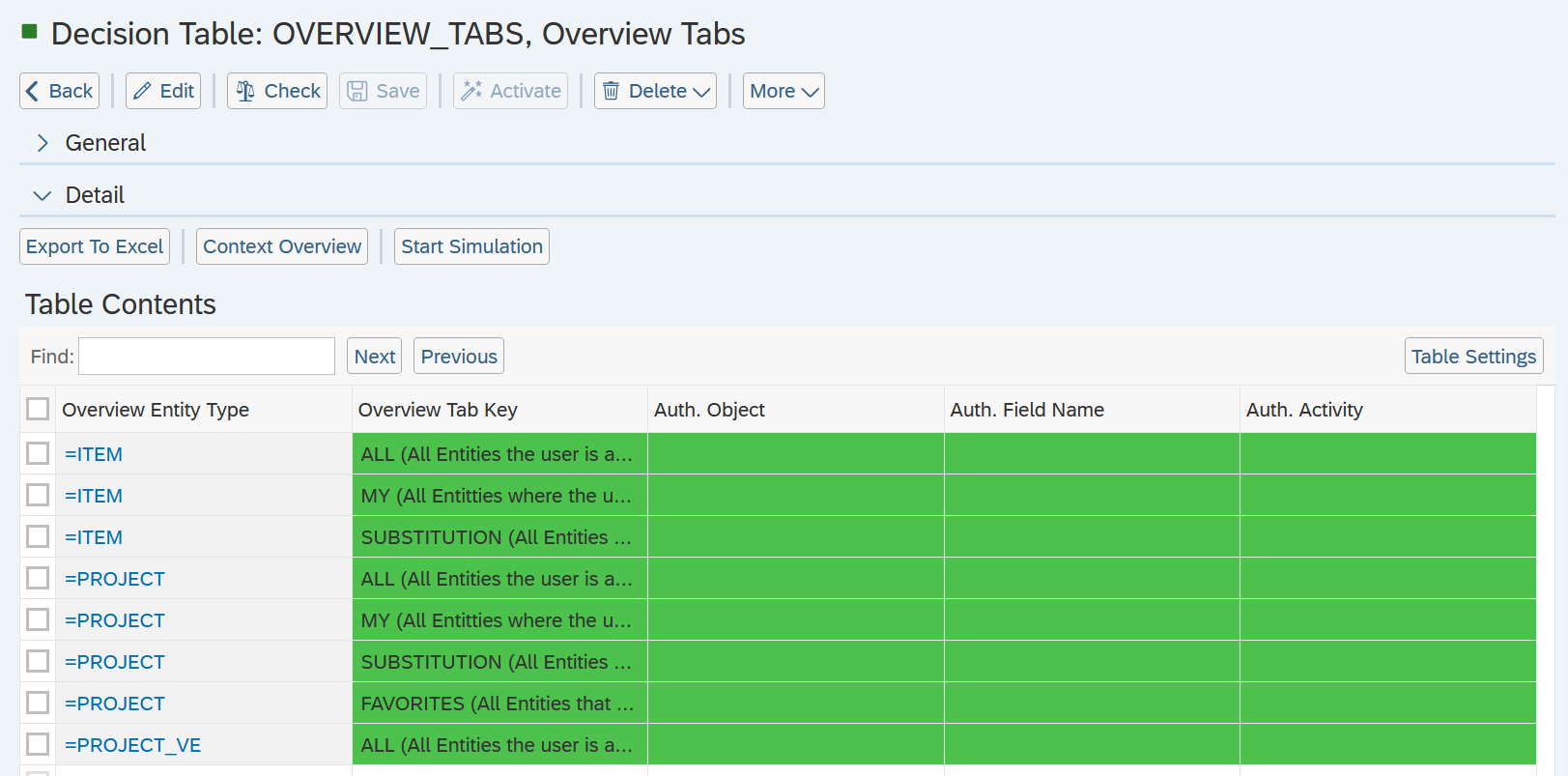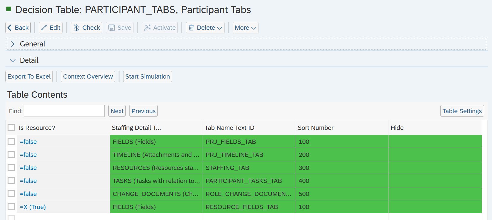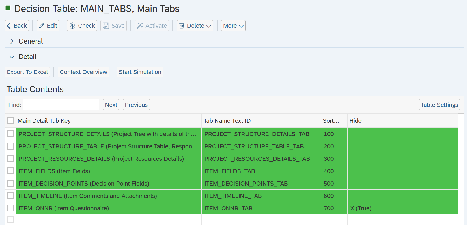 The Customizing of Tabs has been thematically split up. For each of the following sections of this guide a separate Decision Table is used.