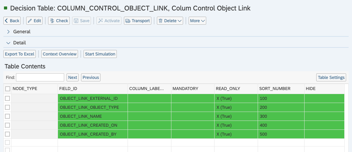 columns, BRF+ Customizing, authorization, BuPa links, object link
