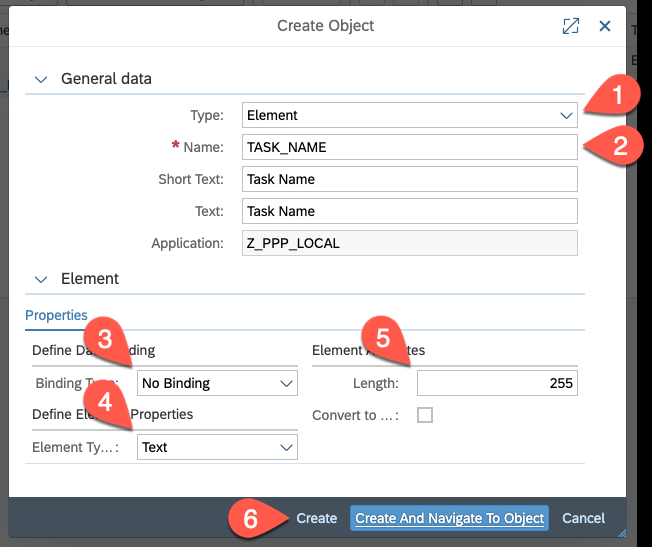 - Choose a Binding Type. You can choose between No Binding and Binding to DDIC Element (Data Dictionary).