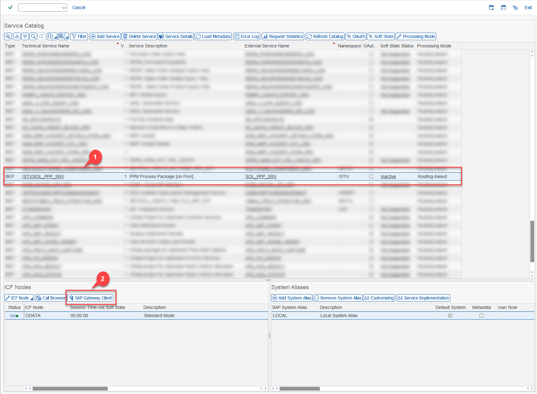 /n/IWFND/MAINT_SERVICEon the frontend system. - Select /STX/SOL_PPP_SRV