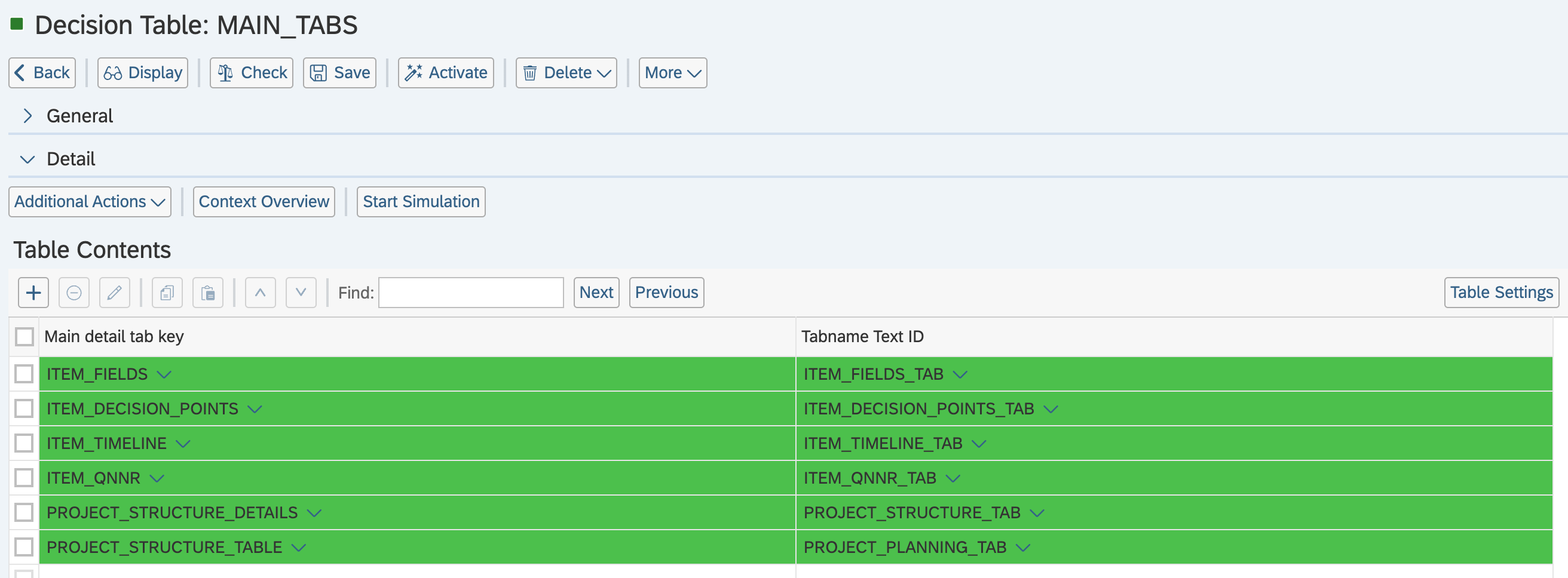 Next, open your BRF+ Application and navigate to the expression table “Main Tabs” (Technical Name: MAIN_TABS).