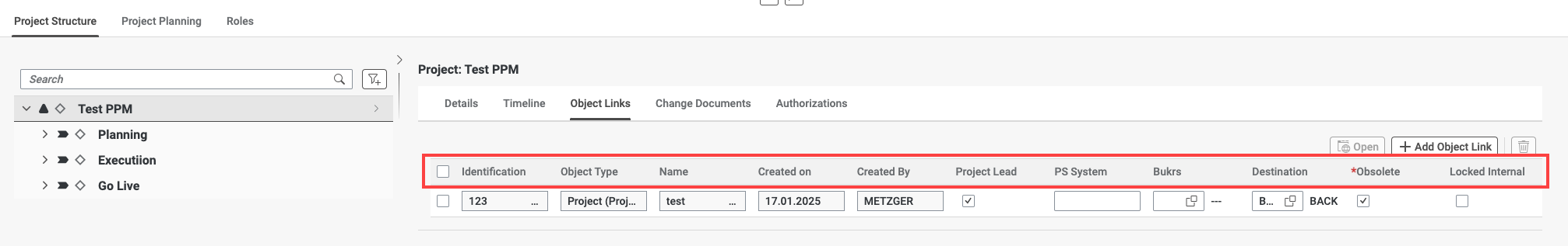- Object Type: Enter any Object Type from the standard PPM. (e.g. DPO for Project)