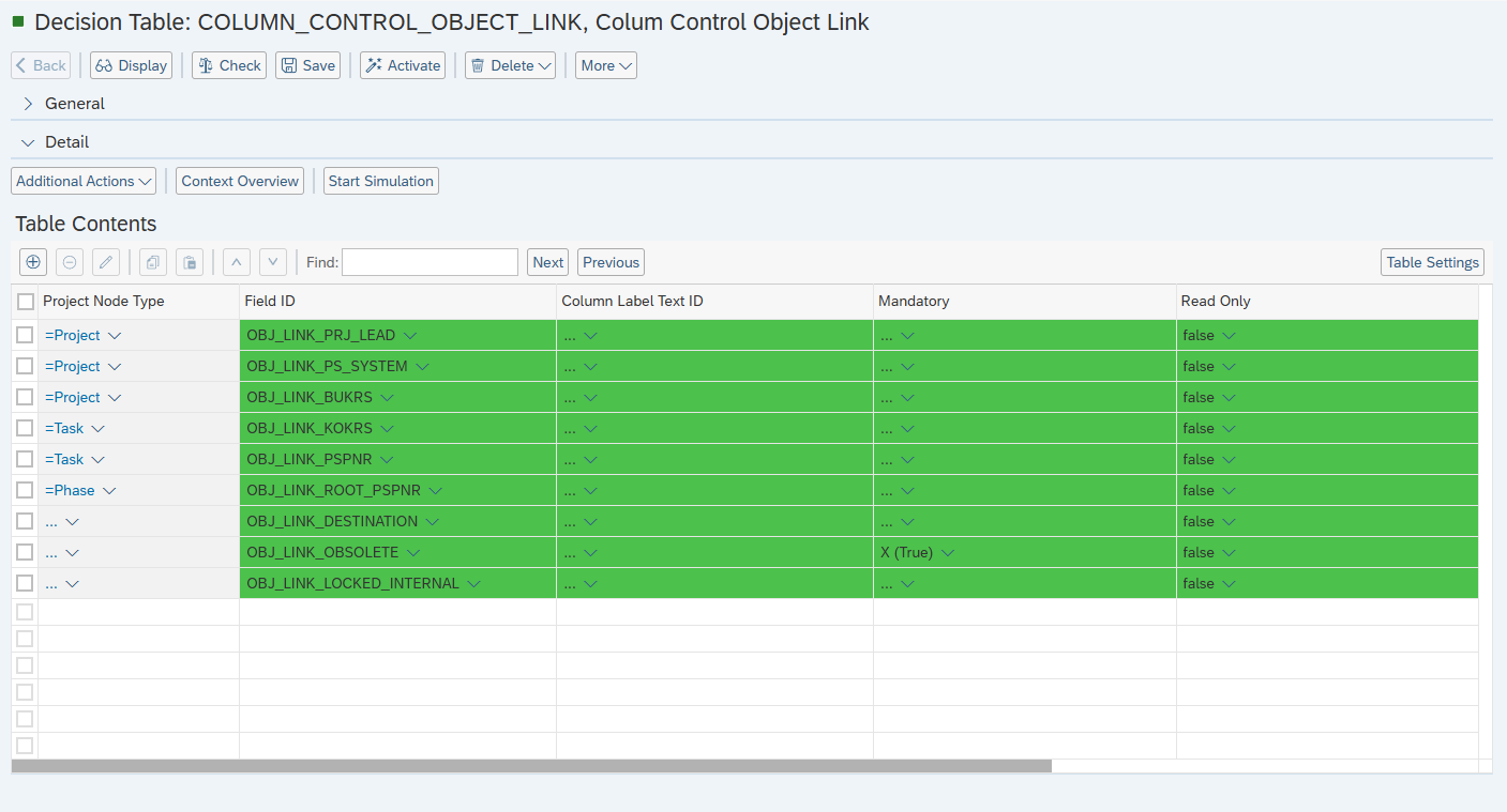 Open your BRF+ Application and navigate to the decision table “Column Control Object Link” (Technical Name: COLUMN_CONTROL_OBJECT_LINK).