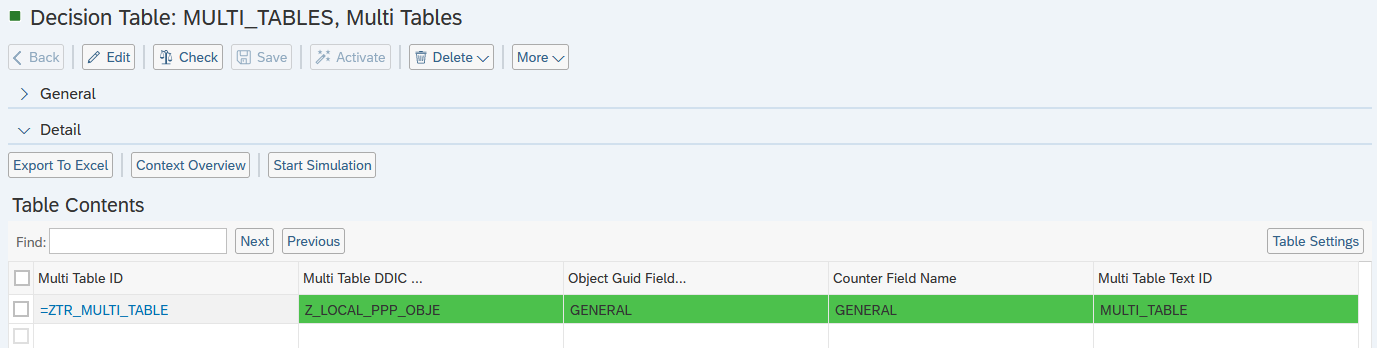 Step 1: Navigate to Decision Table MULTI_TABLES (Multi Tables) and create a new entry
