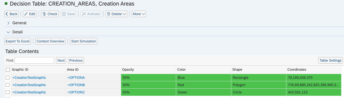 Choice Area: Enter the Area ID from expression table “Creation Areas” (Technical Name: CREATION_AREAS). The given Area is then shown for this step.