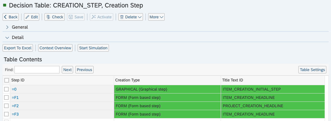 Title Text ID: Enter any Text ID (Used in “Translatable Texts”, Technical Name: TEXTS). The Text of the Text ID will be used as the Title of the Creation Step.