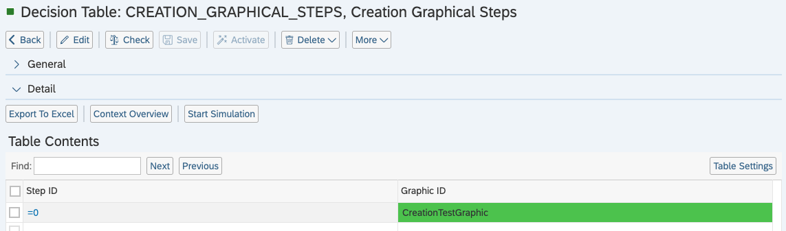 Graphic ID: Enter any Graphic ID. This is later used to link a Step ID to a Graphic in the expression Table “Creation Graphical Steps” (Technical Name: CREATION_GRAPHICAL_STEPS) and “Creation Areas” (Technical Name: CREATION_AREAS).