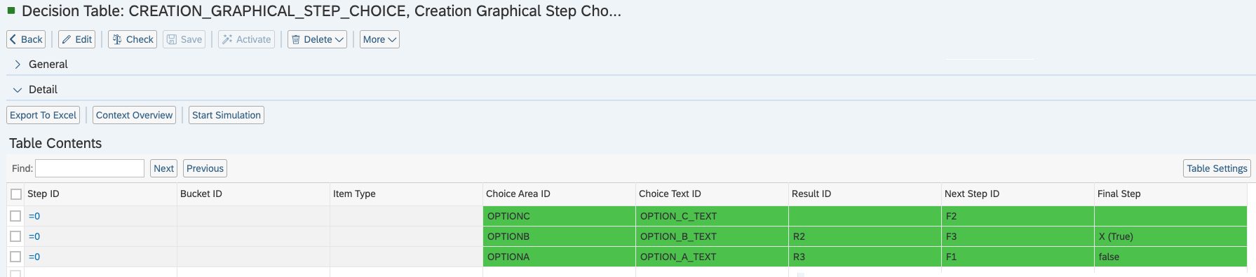 Open your BRF+ Application and navigate to the expression table “Creation Graphical Step Choice” (Technical Name: CREATION_GRAPHICAL_STEP_CHOICE).