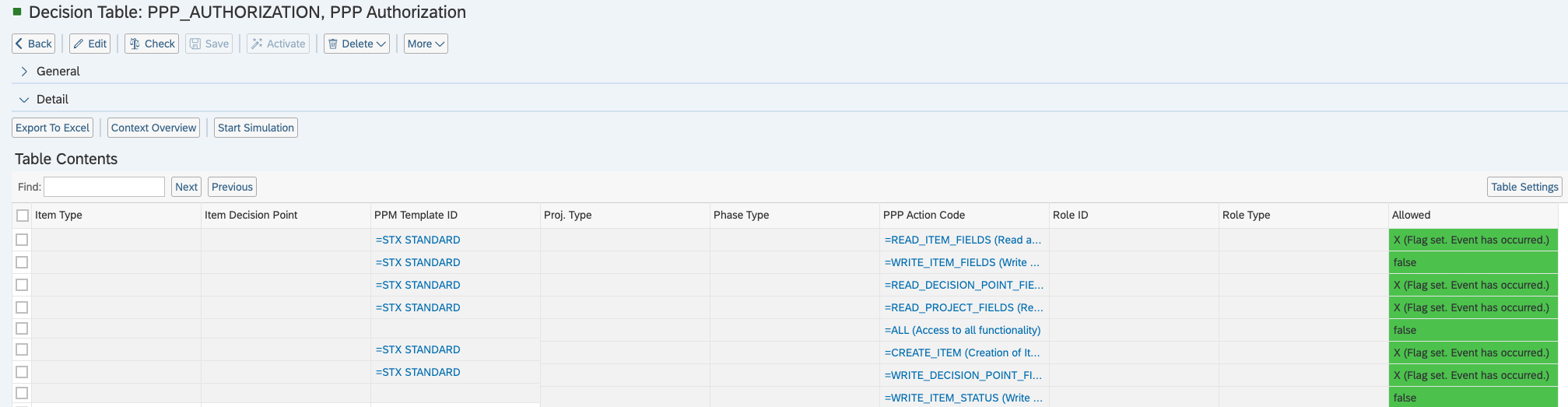 Open your BRF+ Application and navigate to the expression table “PPP Authorization” (Technical Name: PPP_AUTHORIZATION).
