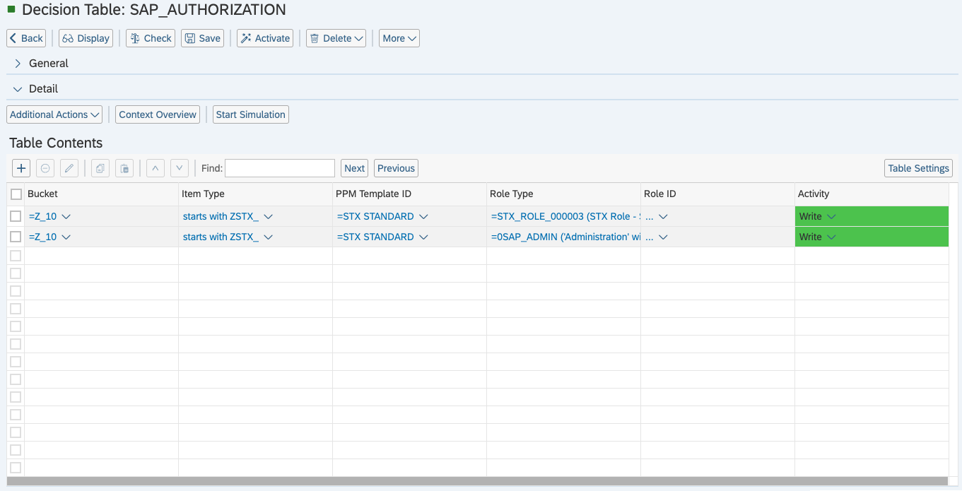 Open your BRF+ Application and navigate to the expression table “SAP Authorization” (Technical Name: SAP_AUTHORIZATION).