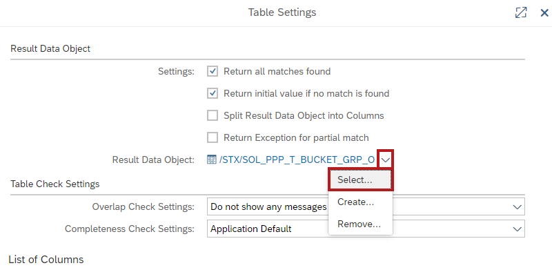 - The table settings and columns have now been adjusted. The Checkbox “Split Result Data Object into Columns” should be true even though it might’ve been false before the adjustment**.**
