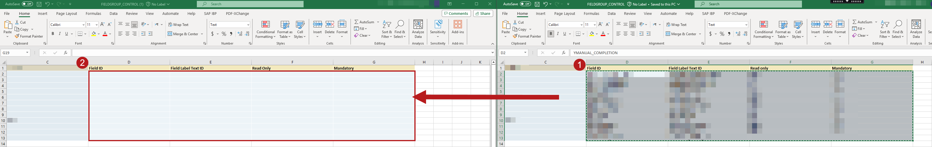 - Open both exported Excel Sheets. Mark the area of the data in the output columns and copy it to the empty area of the new excel sheet.