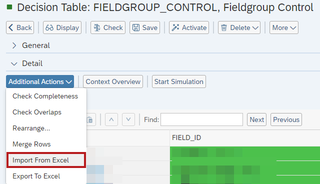 The column order of the output columns of decision table “FIELDGROUP_CONTROL” changed. Please be especially cautious here. Further information are mentioned in Step 2.