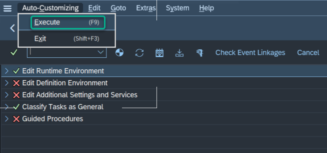 - Choose Auto-Customizing → Execute Automatic Workflow Customizing