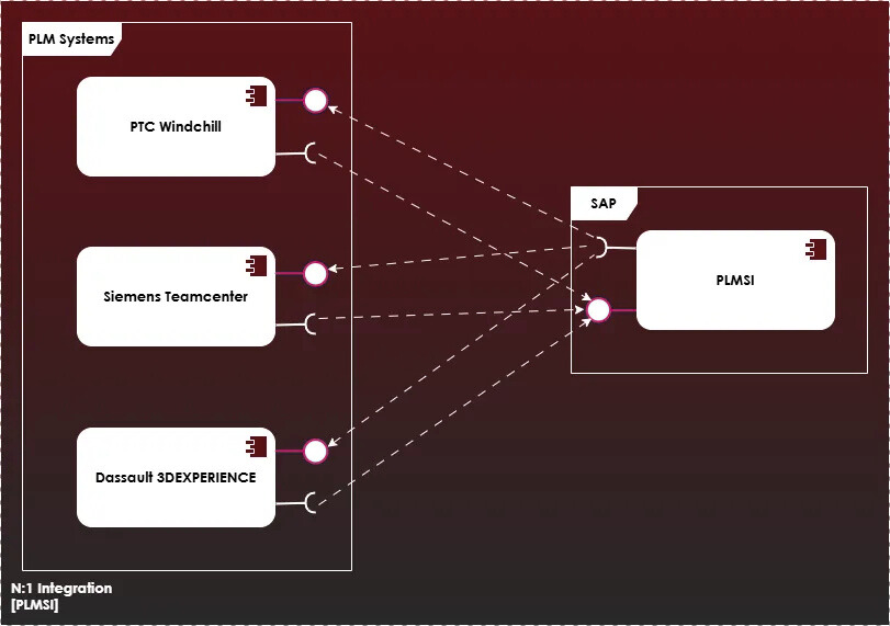 - Support for Multiple PLM Systems: A key benefit of PLMSI is its flexibility. It can integrate SAP systems with multiple external PLM systems (N:1 integration), such as Siemens Teamcenter and Dassault 3DEXPERIENCE, simultaneously. This allows organizations to maintain different configurations for each PLM system based on their specific needs.