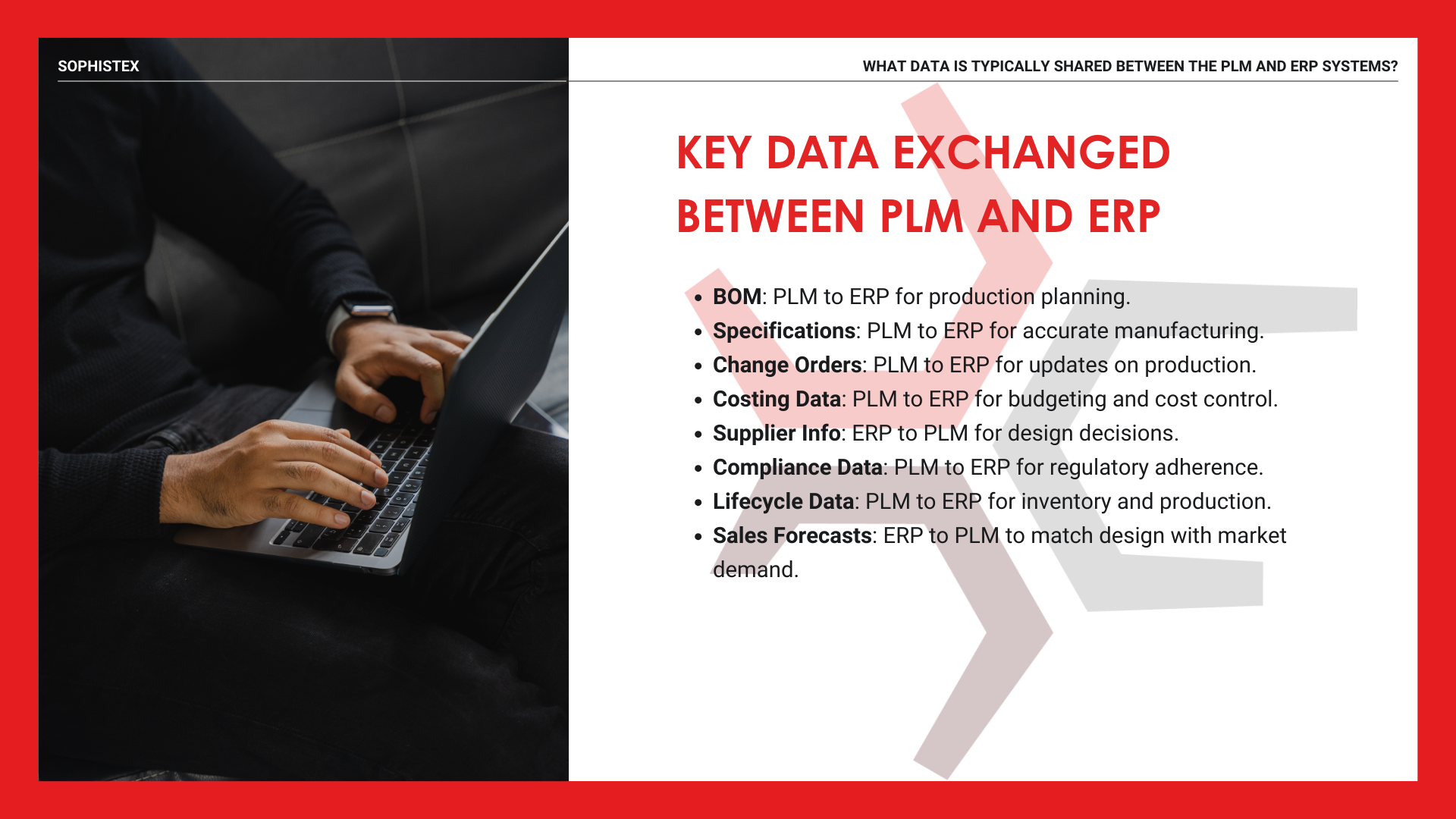 * **ERP to PLM:** Forecasting data generated by the ERP system can be shared with PLM to influence design decisions, ensuring that the product meets market demands and production capacities.
