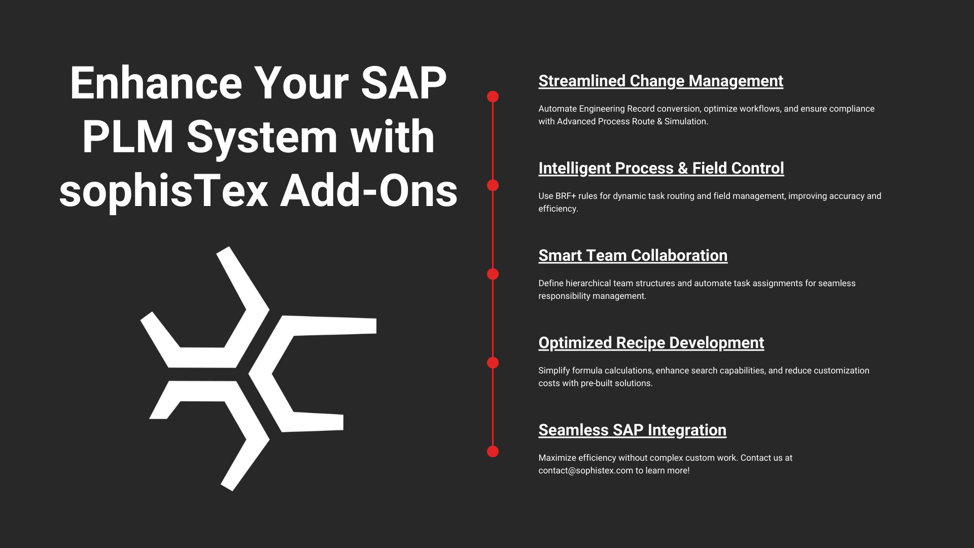 Discover how sophisTex add-ons can transform your SAP PLM experience. Contact us at contact@sophistex.com to learn more or schedule a demo.